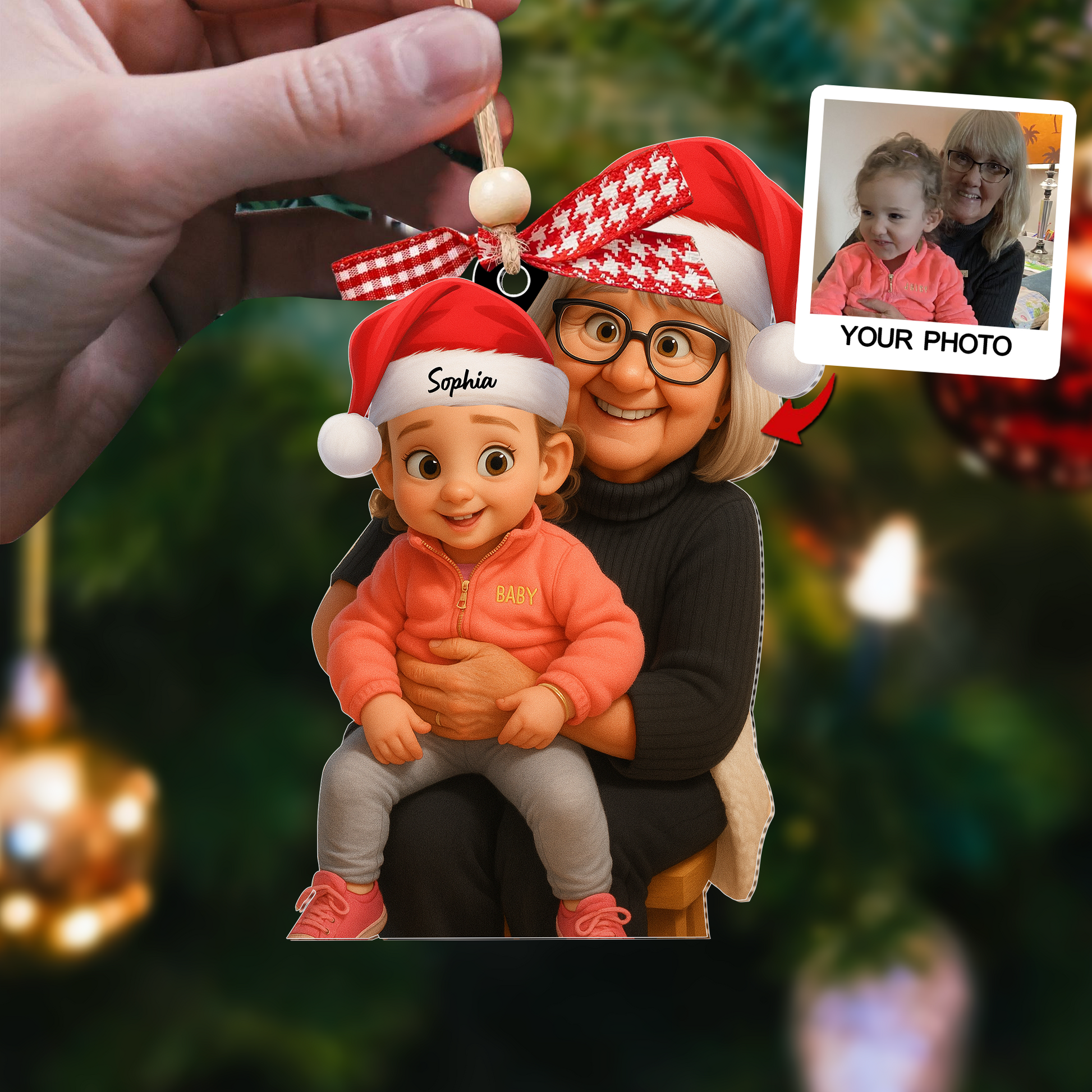 Custom Photo Ornament, Family Picture Christmas Ornament, Personalized Gift for Grandma, Acrylic Keepsake Ornament