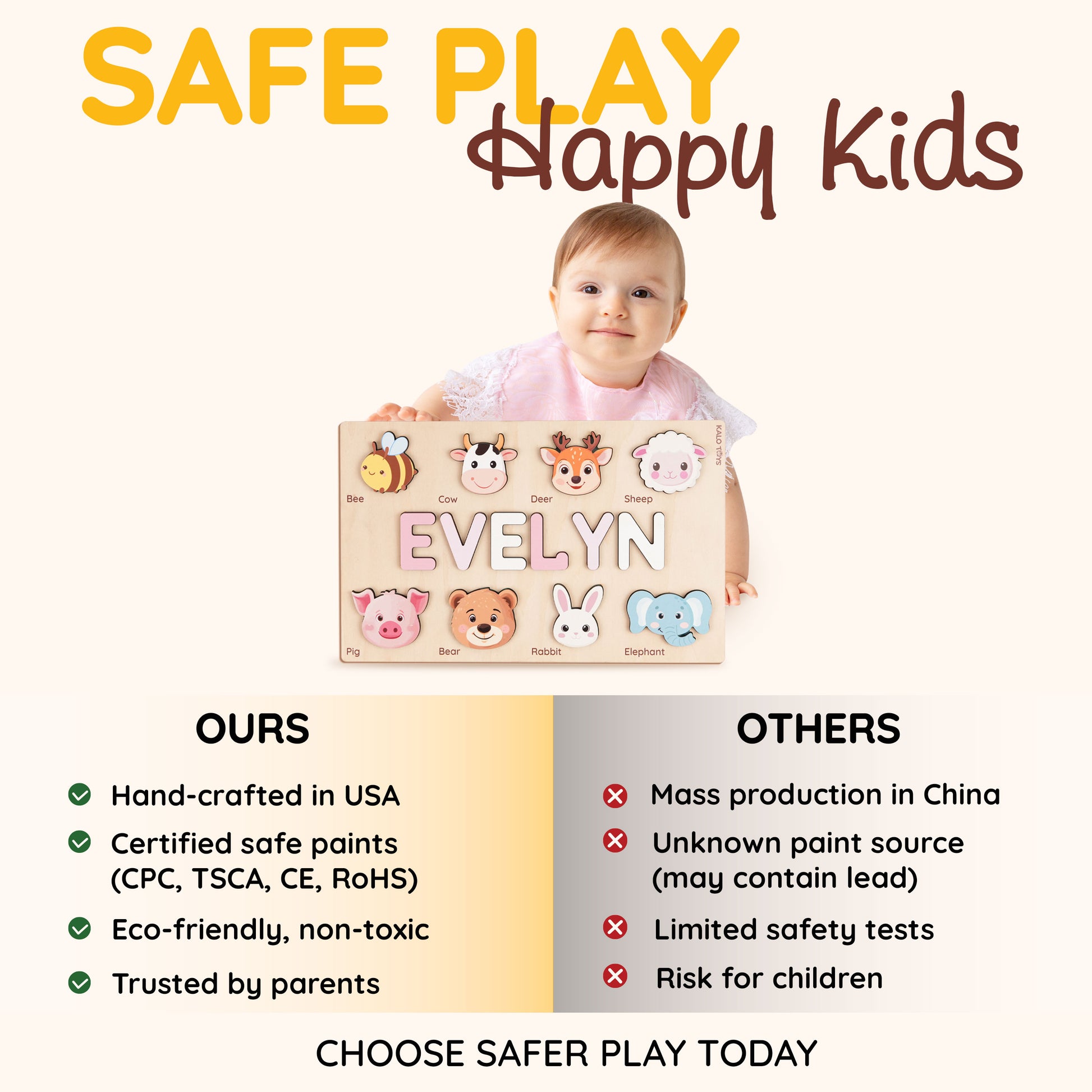 Animal Name Puzzle for Kids, Wooden Toddler Puzzle with Story-Themed Elements, Custom Gifts For 1-3 Year Old, Nursery Decor NP53