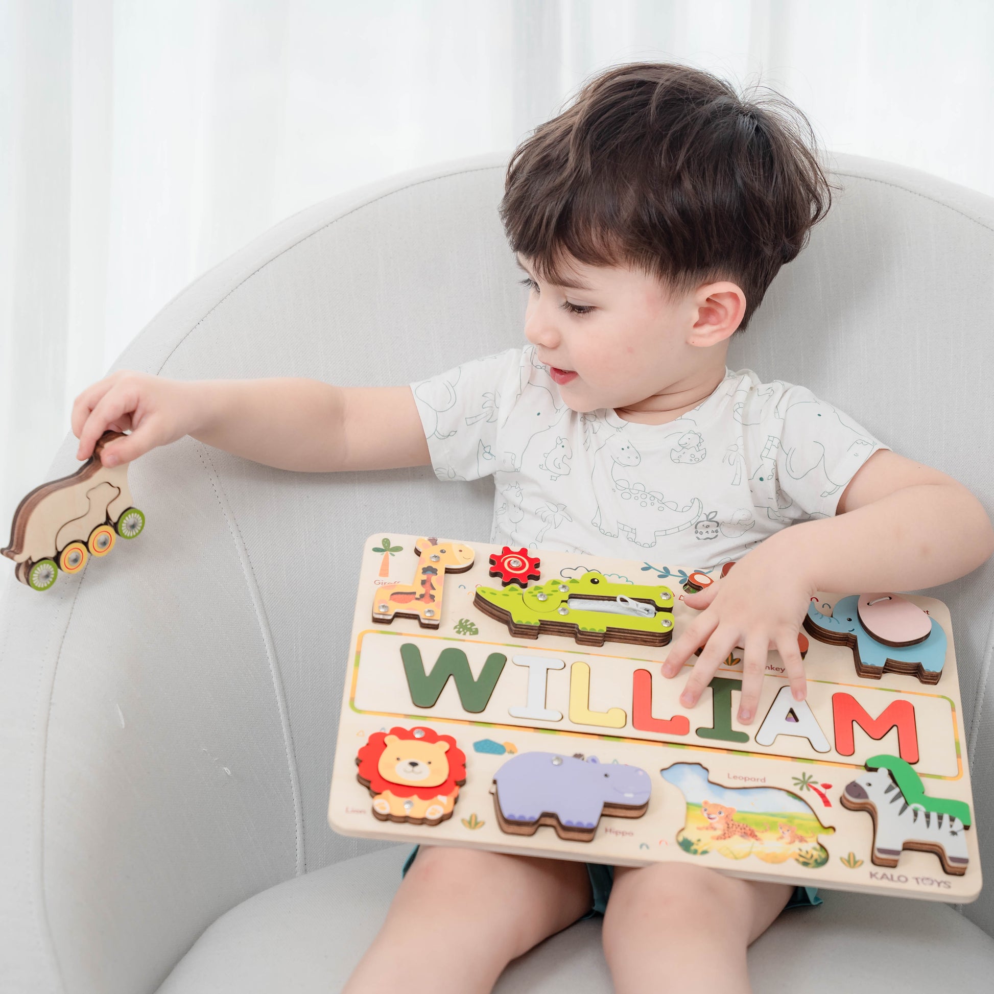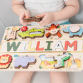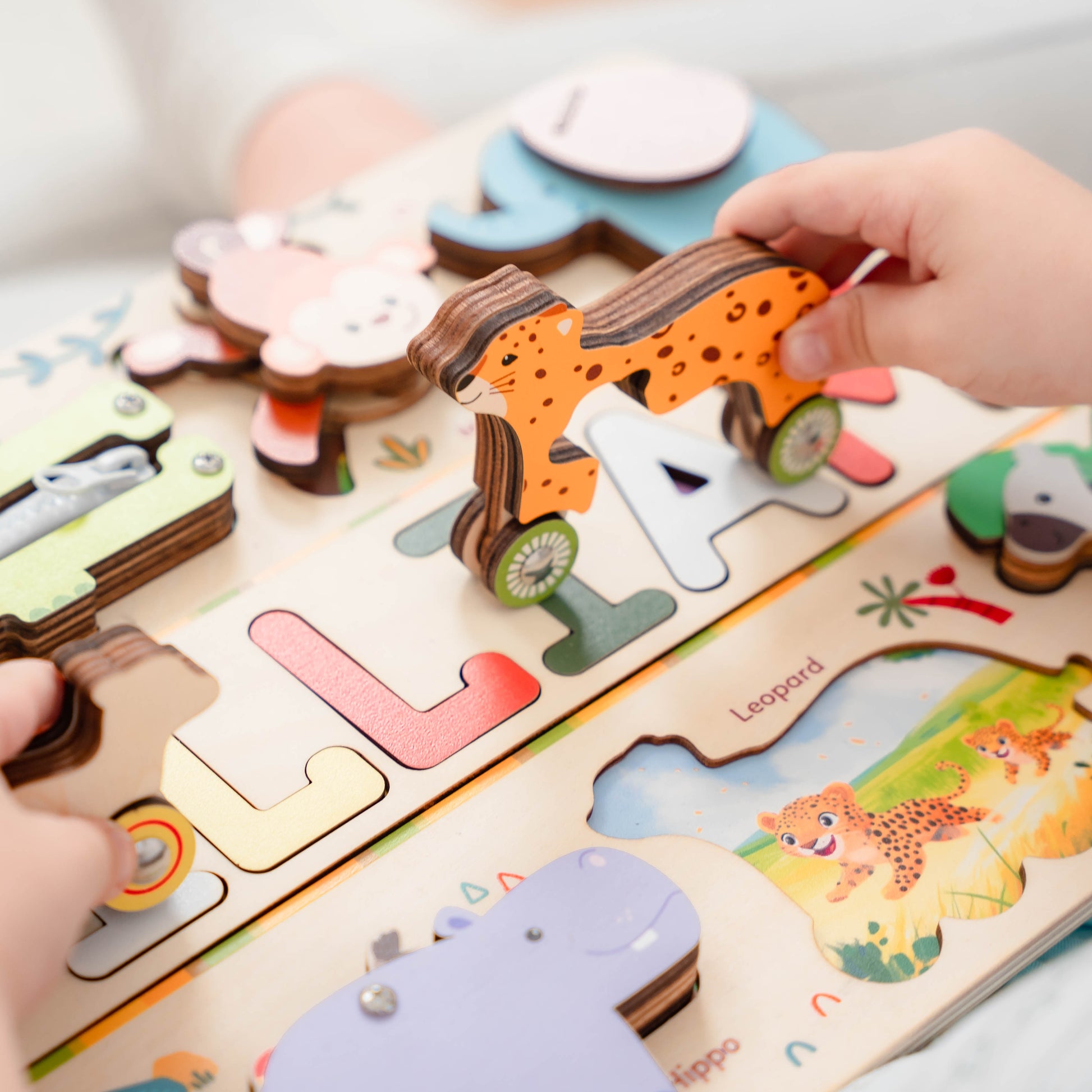 Personalized Wooden Name Puzzle – Montessori Sensory Animal Board