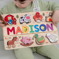 Animal Name Puzzle for Kids, Wooden Toddler Puzzle with Story-Themed Elements, Custom Gifts For 1-3 Year Old, Nursery Decor NP53